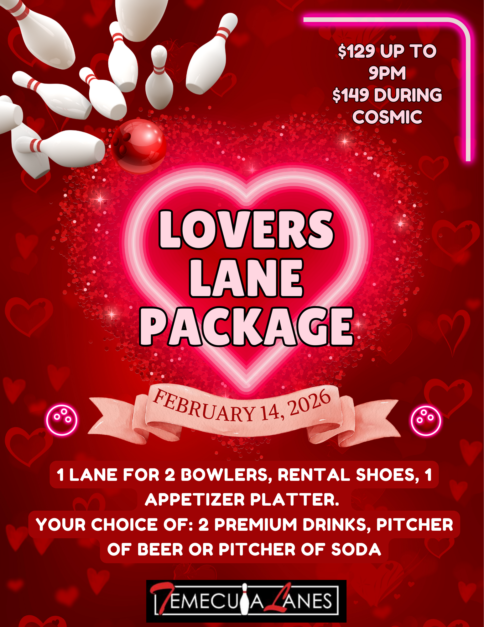 Book your lane online and guarantee your spot. Special arcade discounts also available for online reservations.